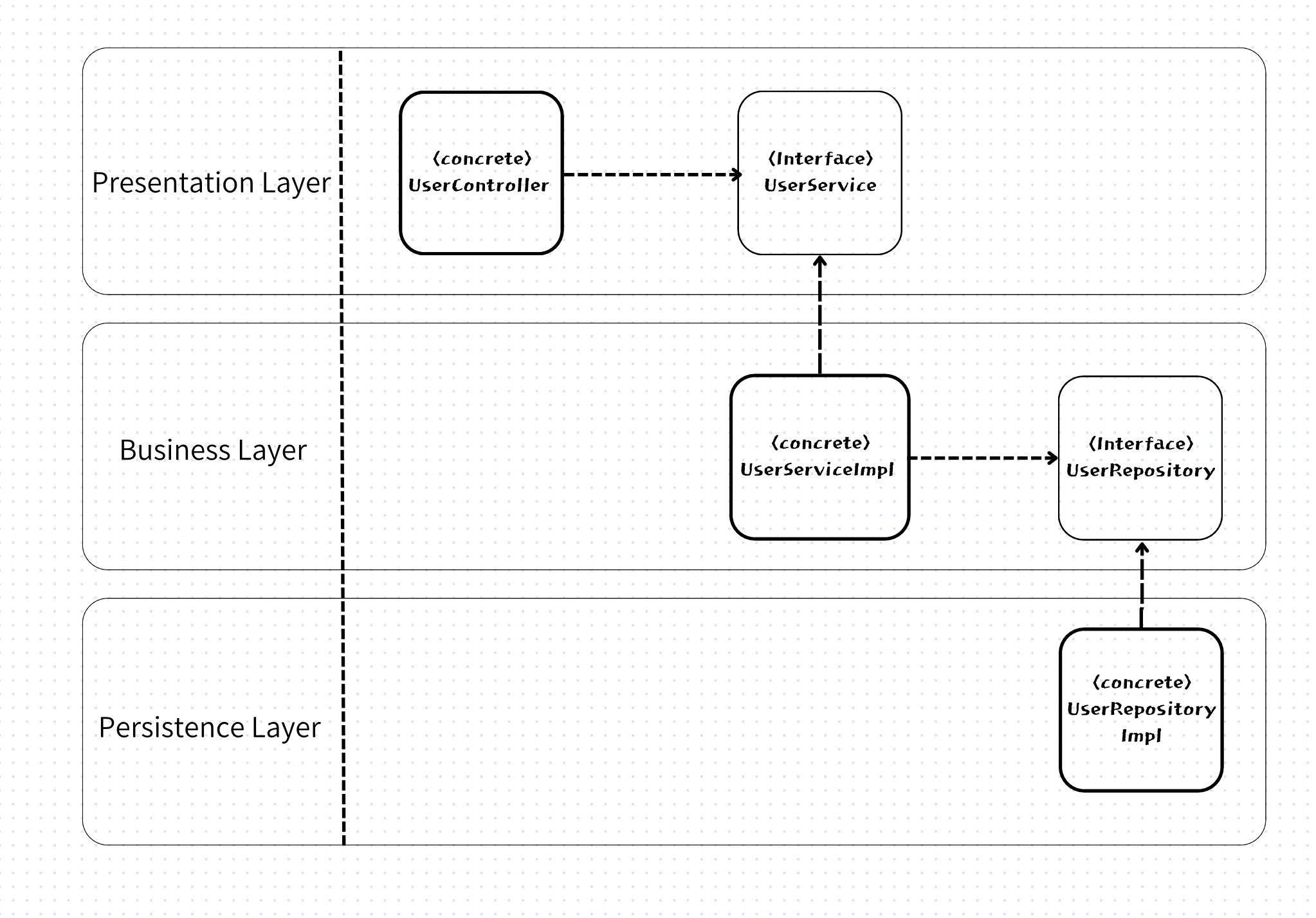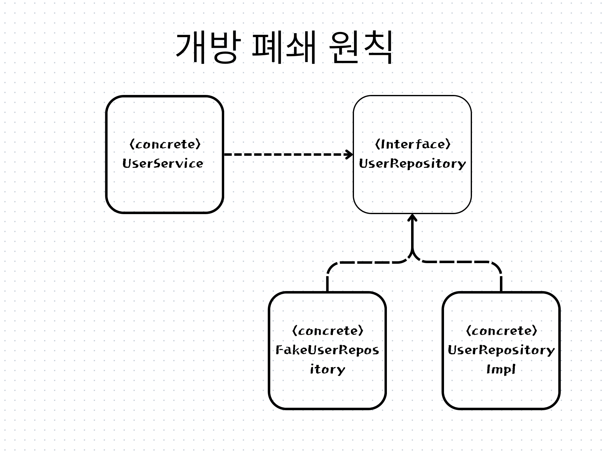 즉 실제 Production 환경에서는 UserRepositoryImpl를 사용하고 테스트 코드 작성 시엔 FakeUserRepository를 객체로 사용할 수 있으며 Business Layer 이후의 Persistence Layer, Database Layer의 강결합을 약하게 할 수 있다.