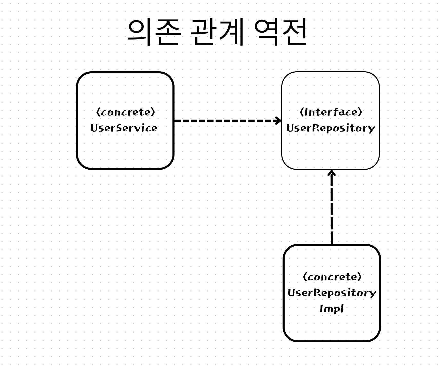 UserService 객체는 UserRepositoryImpl에 무엇이 구현되어 있는지 전혀 알 필요가 없고 의존관계 주입된 객체를 사용하기만 하면 된다.