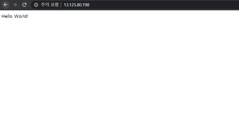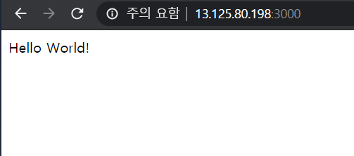 원했던 대로 80 포트(기본)에서도 3000 포트처럼 hello world가 나옵니다.