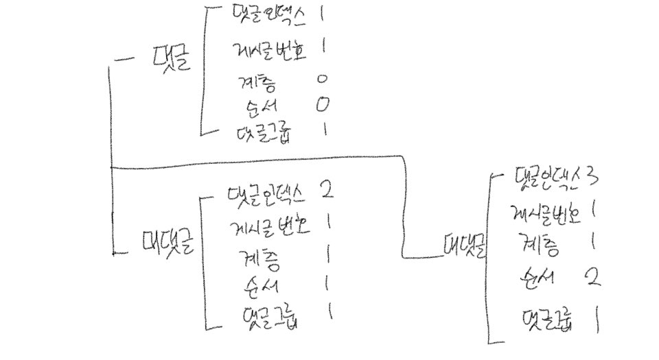 아래의 이미지가 댓글과 대댓글 구성 예시입니다.